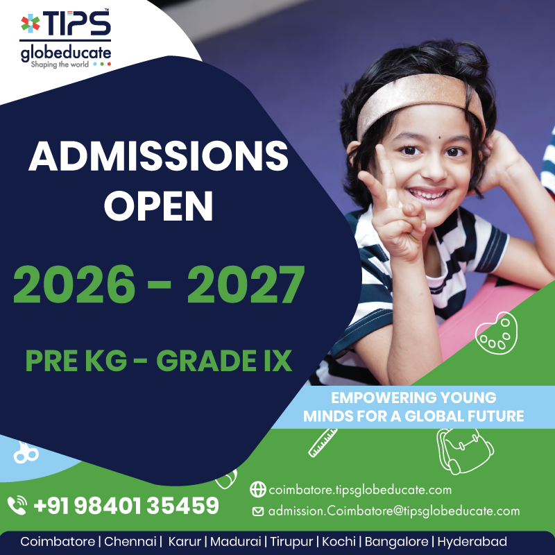 At TIPS Globeducate Coimbatore, every space is built with your child’s future in mind, equipping them with the knowledge, skills, and experiences they need to thrive in an ever-changing world.